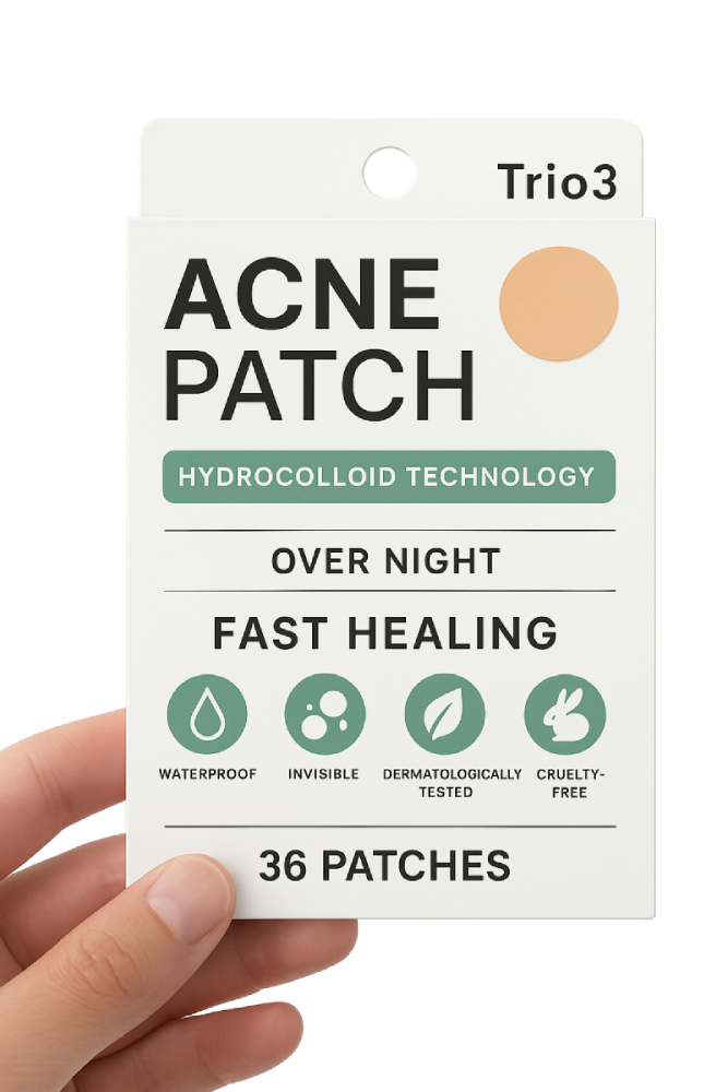 Clear your skin while you sleep! The Trio3 Acne Patch uses hydrocolloid technology to absorb impurities, reduce redness, and speed up healing. Each patch is invisible, waterproof, and dermatologically tested, giving you a discreet way to protect and heal pimples fast.